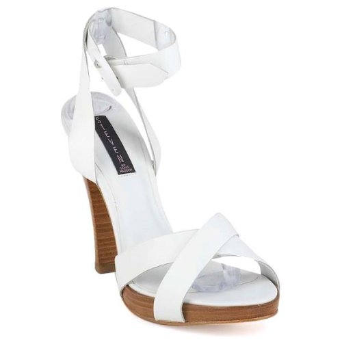 Black leather piping adds a sleek texture contrast and outlines the flattering wrap-effect silhouette. 6" chunky heel; 2.5" platform; 3.5" equiv. Scalloped toe strap. Adjustable ankle strap. Silvertone hardware. Leather lining and footbed. Signature red PIECES White Mesh Sandals. ... Get Document